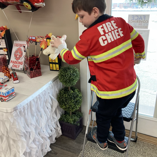 To heat up the bash, the kids got to dress up as heroes with red fire chief hats and badges and jumped into action by participating in an exciting Firefighter Training Obstacle Challenge Course. The kids drove a fire truck around cones, jumped through a ring of fire, crawled through a tunnel, put out multiple fires along the way and even rescued a stranded (stuffed) kitten.