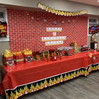 We turned The Celebration Studio into a blaze of fun filled with firefighter themed garlands, streamer flames, fire engine balloons, toy fire trucks and burning buildings.